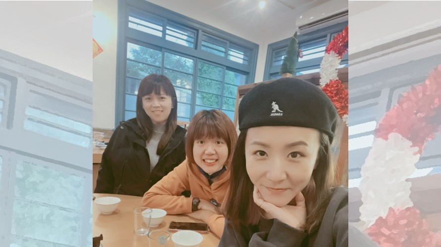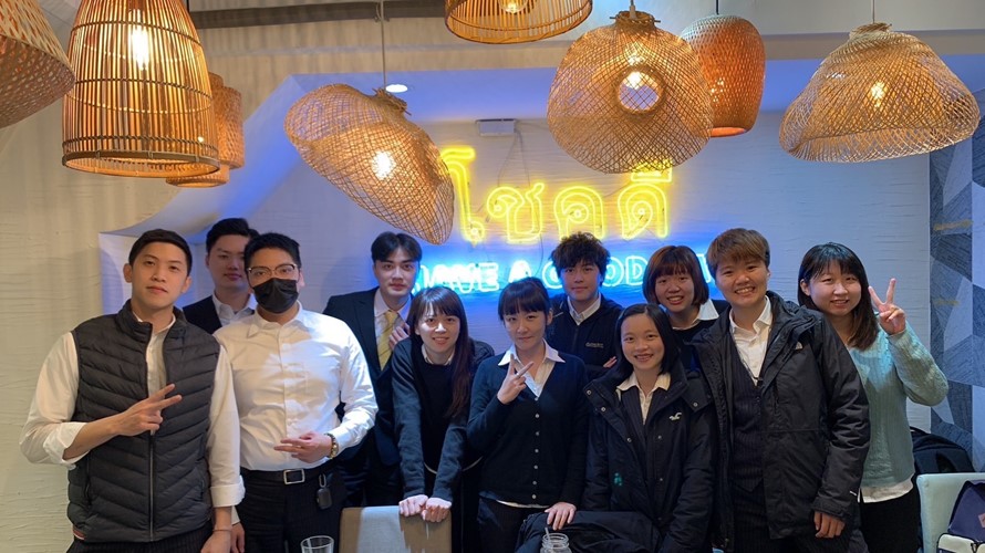 ▲林毓璞(右1)閒時帶直屬學妹出外聚餐。(圖/永慶房屋提供)