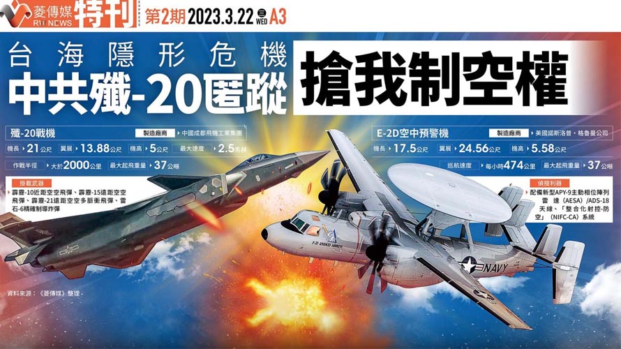 《菱傳媒》調查,殲-20是中共研發自製的戰鬥機,也是繼美國生產的F-22和F-35之後,世界上第三款進入量產的第五代匿蹤戰鬥機,殲-20使用的高科技甚至比F-22還先進;一位曾駕駛E-2K空中預警機的軍官也向《菱傳媒》透露,國軍運用聯合情監偵後,可用電腦模式對殲-20動態進行預判與追蹤,但事實上還是常常「斷片」,只是國防部不敢說出真相。