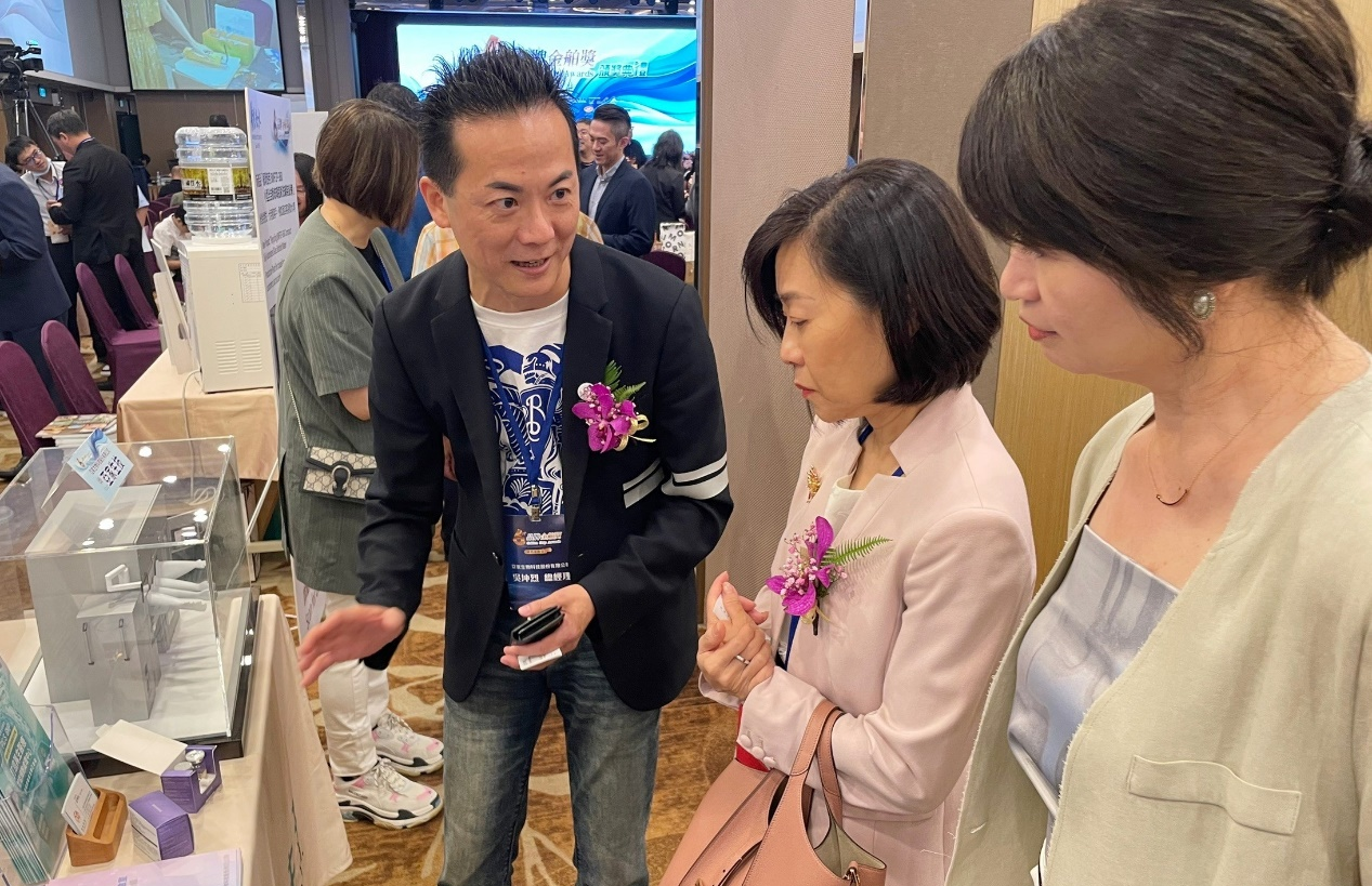 今年典禮現場還有展攤巡禮活動,透過社群直播介紹獲獎企業,包括中華民國全國商業總會理事長許舒博、經濟部國貿署署長江文若,以及國發會副主委高仙桂等貴賓,皆十分關注再生醫療產業發展,亞家生技身為全台唯一跨領域整合細胞生技、製藥工業技術等領域的公司,不只專注於優化細胞培養過程,更重視製造場域的精進。其實打造一間微型智能細胞製劑廠,不只所需廠房用地可大幅縮小66%,還能有效節省80%用電在內的維護營運成本,降低50%無塵衣耗損,以及每年確效更換之耗材,領先業界落實綠色永續。