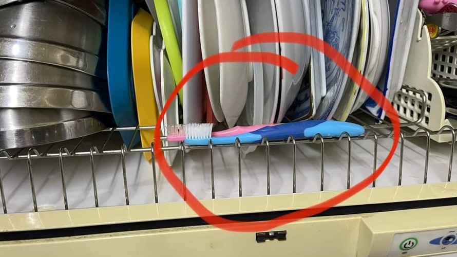原PO在臉書「爆怨公社」上貼出照片,牙刷和碗盤一起放在烘碗機裡,她抱怨「想問各位爸媽,你們會將小孩的牙刷放進去烘碗機,跟碗盤一起烘嗎?就算牙刷有洗,這樣真的不髒沒有細菌嗎?我哥他老婆一直都這樣做,然後一直說她自己很愛乾淨?就我自己的認知,這個東西不用烘吧奇葩的還有用過的3M牙線,洗好放在我爸洗臉的毛巾上!我哥還說沒關係,毛巾他二個星期會洗一次!我也是疑惑他們一家四口用二條大浴巾,洗完澡的時候擦乾身體用的」。