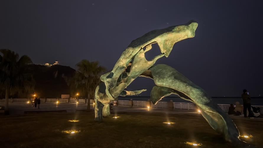 西子灣最美風景!全台離海最近的公共藝術「海洋之舞」三鯨舞動聖誕揭幕