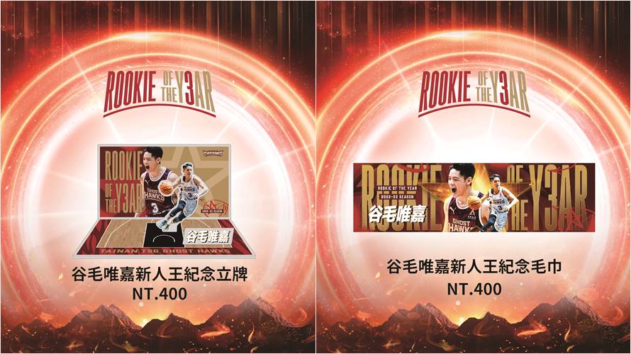 為了慶祝新科新人王,台鋼獵鷹推出「谷毛唯嘉新人王紀念商品」,內容包含谷毛唯嘉「新人王紀念短T」、「新人王紀念毛巾」以及「新人王紀念立牌」,即刻開放預購至6/5中午12:00截止,提供球迷收藏此限定商品。