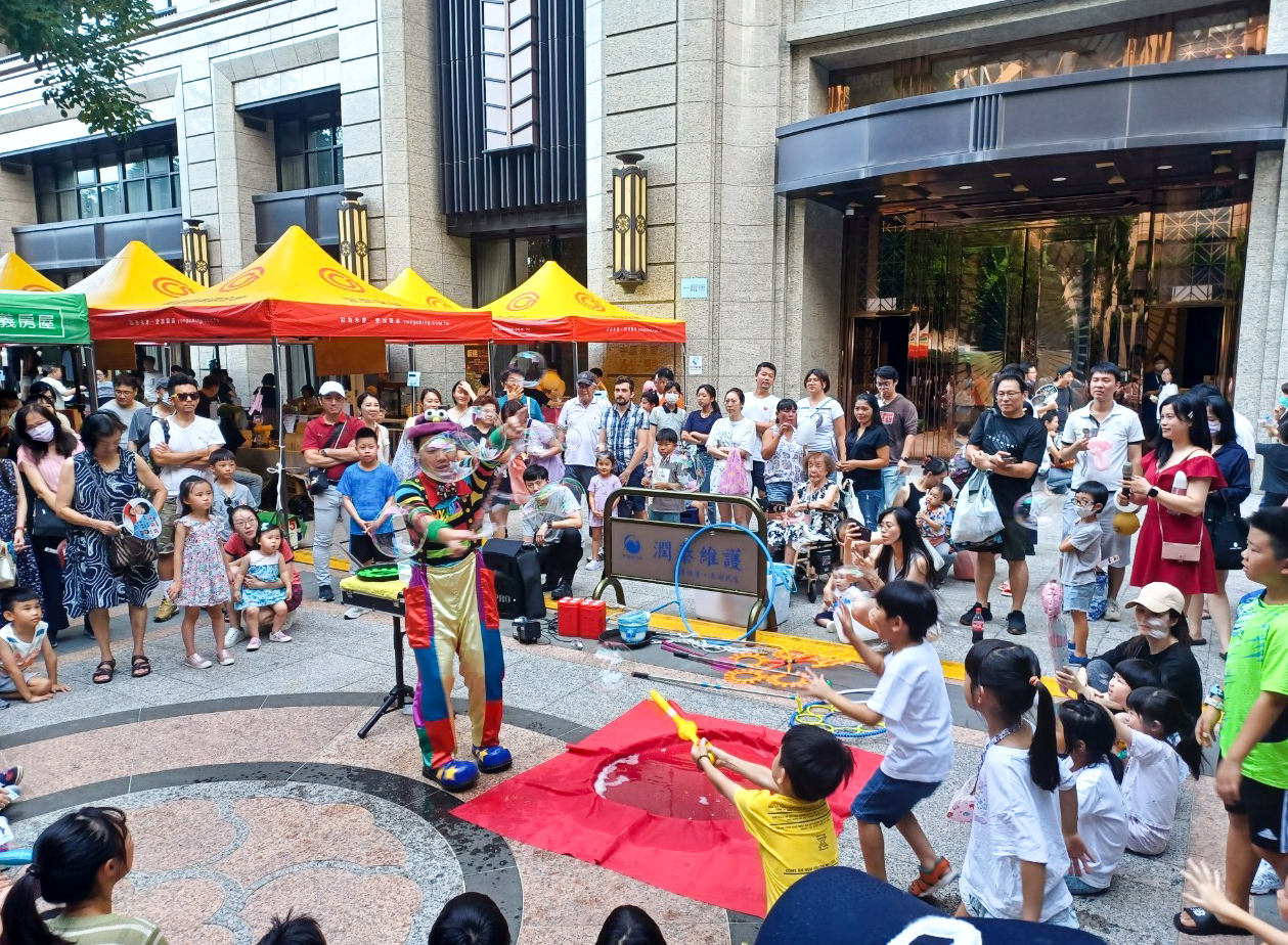 活動現場設置多種特色攤位,有冰棒、爆米花、棉花糖等美食攤位,也有電動彈珠台、神槍狙擊手、投籃高手等刺激的遊戲項目,其中軌道小火車則成為小朋友最喜愛的遊樂設施,有許多親子家庭前往遊玩,造成現場大排長龍!另外,每個時段還安排有趣親子互動活動,包括魔幻泡泡秀、巨人小丑迎賓踩街和奇幻光影秀等,讓大小朋友都能享受美食與遊戲的雙重樂趣。