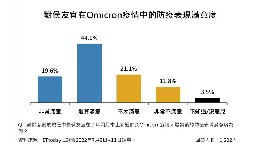 - 現任新北市長侯友宜在Omicron疫情中的防疫表現滿意度63.7%