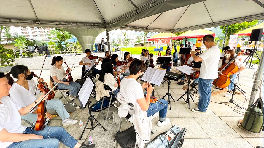 ▲台北市信義區嘉興里辦公處邀請台北市立交響樂團,演出多首古典樂曲慶祝母親節。(圖/永慶房屋提供)
