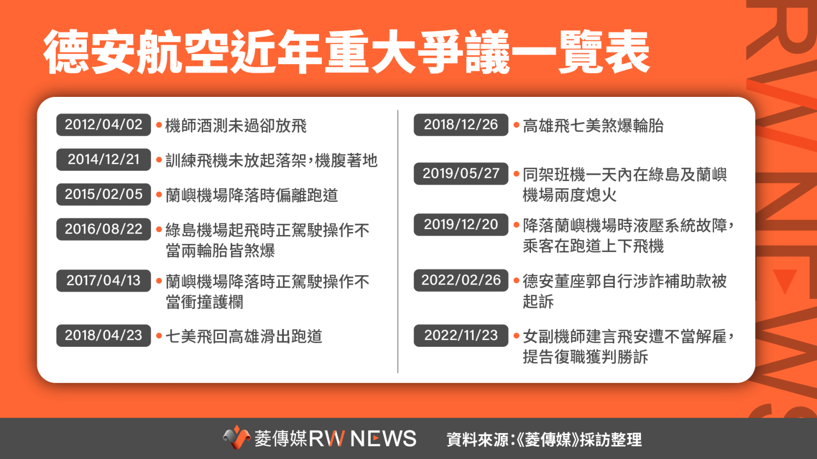一位德安航空機師看了報告表後無奈說,德安航空近年來飛安事故頻傳,民航局卻睜一隻眼閉一隻眼,機師執飛也是提心吊膽,最近有幾位同事只因為向上級反應公司的飛安問題就馬上被解雇,後來都告上法院打官司,搞得大家人心惶惶。
