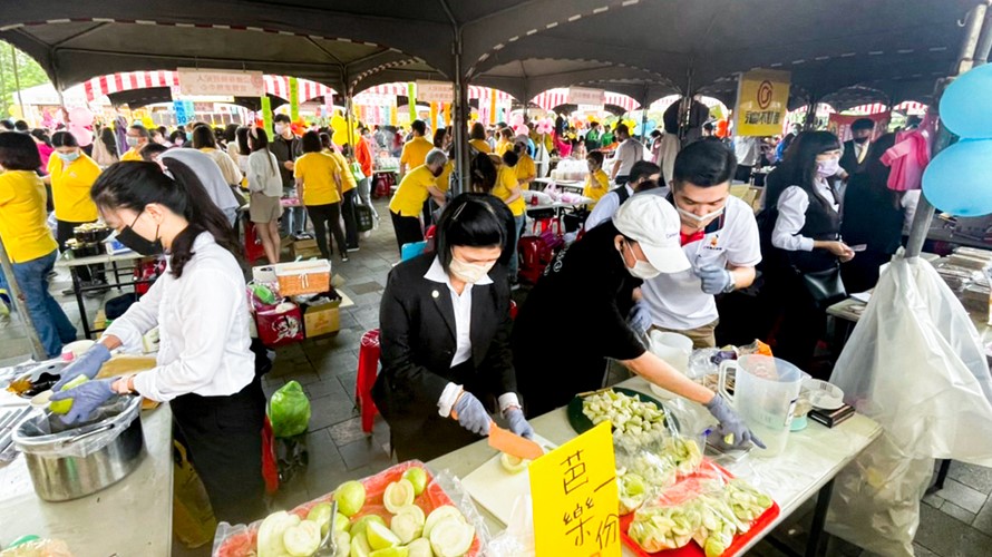 ▲永慶不動產宜蘭縣溪南聯賣區主動認領3個攤位,準備了手工餅乾、現切水果等美食,並將當日義賣收入捐贈給創世基金會。(圖/永慶房屋提供)