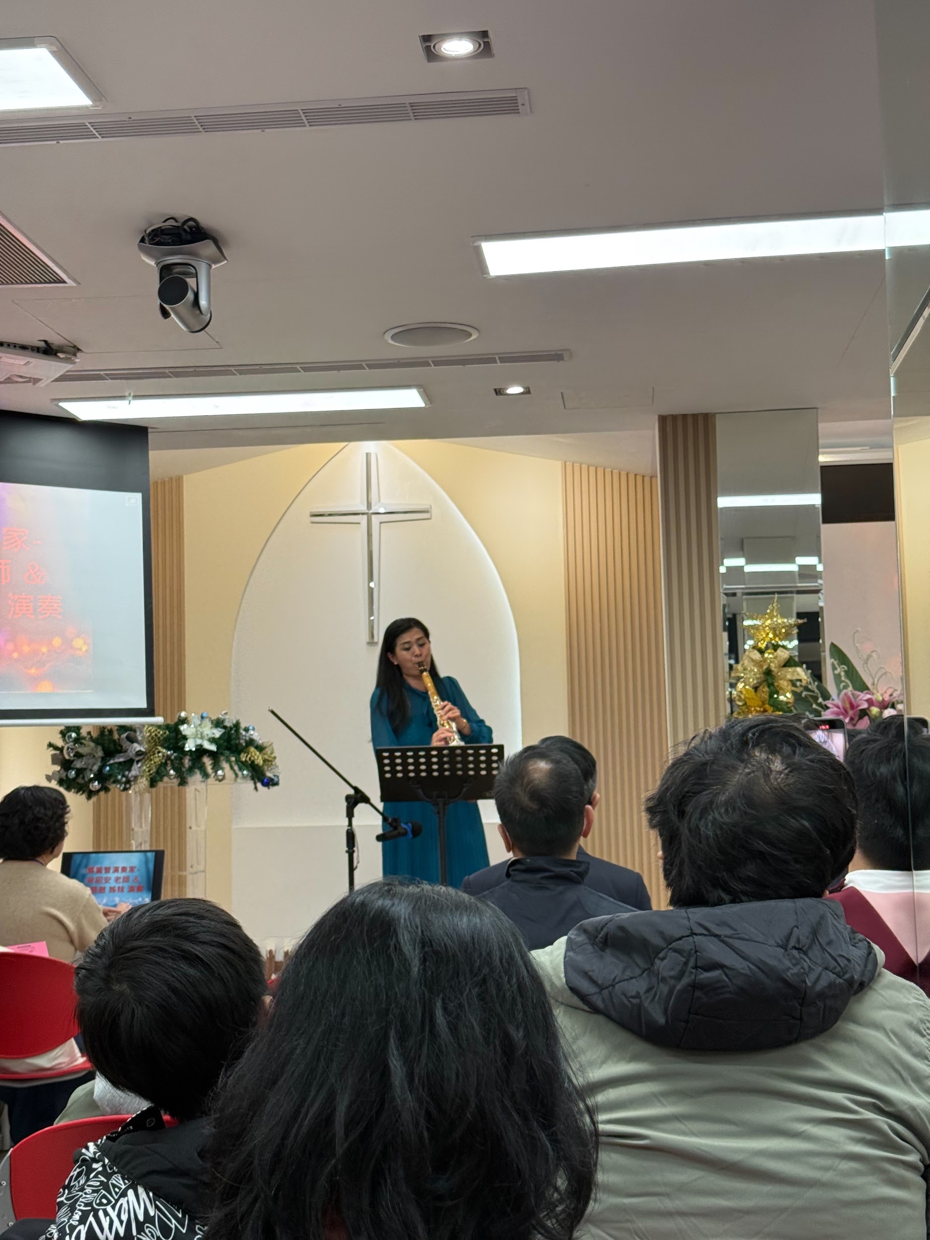 而為了讓一些獨居及弱勢的族群也能領受到聖誕佳節的美好祝福,也在聖誕節前夕,舉辦了一場溫星感人的音樂祝福晚會,除了有榮星教會內湖堂的愛樂合唱團吟唱”普世歡騰”,”一生一世必有恩惠慈愛”等樂曲外,更有旅法豎笛音樂家林昭安老師吹奏的法國舒情名謠。而國際AI智慧產業專家,也是台灣大學電機系客座教授張致恩也分享了:他如何從科技專業中認識上帝的心路歷程,並鼓勵大家在不同領域中,依然可以經歷到造物主的奇妙恩典。