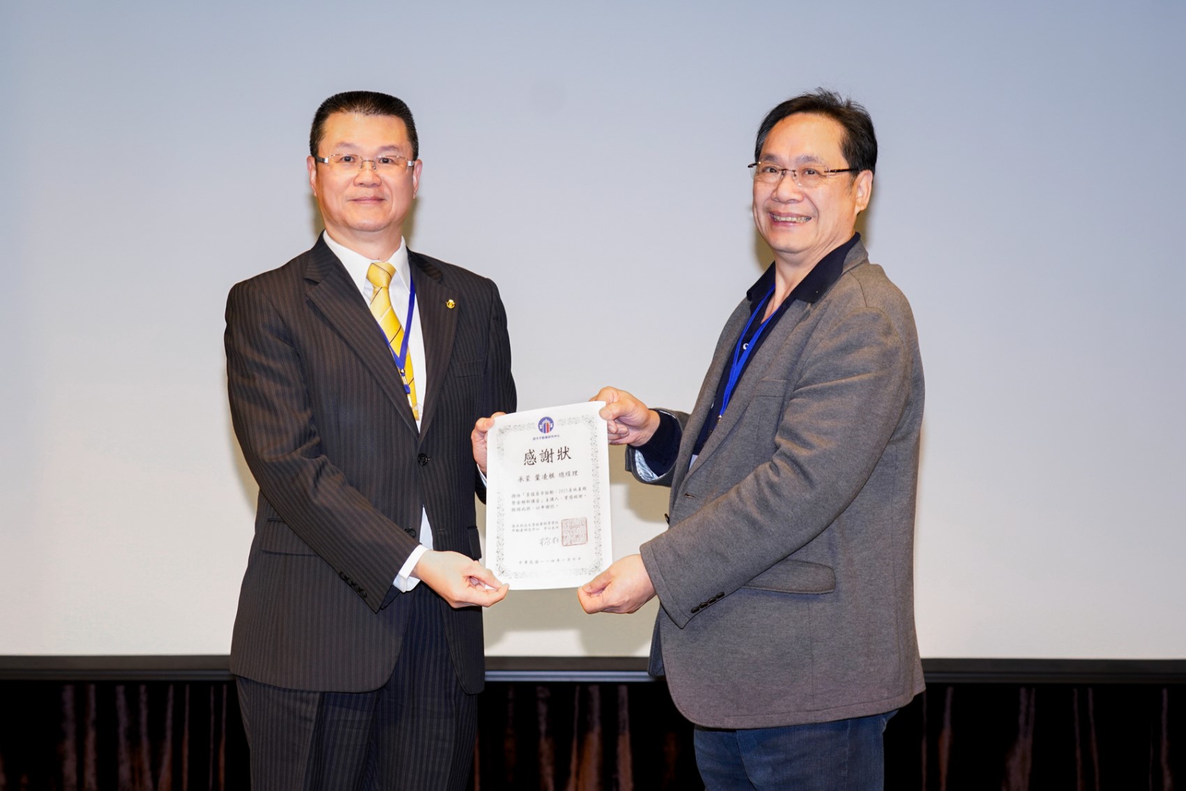 政大不動產研究中心主任楊松齡教授(右)致贈感謝函予永慶房產集團業務總經理(左),分享寶貴房地產知識和洞見給眾多民眾。(圖/永慶房屋提供)