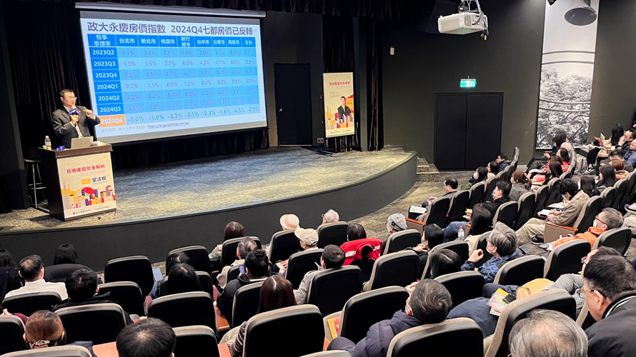永慶房產集團業務總經理葉凌棋受邀主講政大不動產研究中心舉辦之「掌握房市脈動:2025房地產趨勢全解析」講座。(圖/永慶房屋提供)