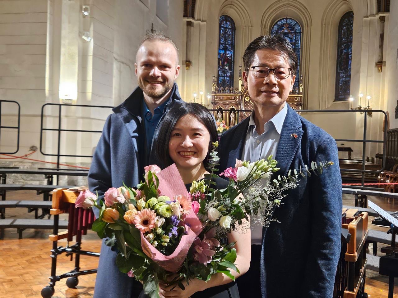 駐拉脫維亞代表處邀請拉國國會議員及各界友人參加本(4)月6日晚間在里加主教座堂 (Riga Cathedral) 由旅居拉國的台灣打擊樂/鋼琴音樂家余沁芸女士與拉脫維亞大學合唱團合作,參與拉國知名音樂家Rihards Zaļupe新作「我的祈禱」首演音樂會,國會友台小組主席Ingrida Circene、外委會副主席Irma Kalnina、前福利部長Gatis Eglitis、政府官員、拉脫維亞大學固態物理研究所所長Andris Anspoks夫婦、資深物理學家、拉國國家圖書館亞洲部主任、研究員及拉國國家電視台記者均應邀出席,共同見證台拉音樂家同台演出。演出結束後,李大使及本處友人均上台祝賀余女士演出成功,李大使亦向指揮Māra Marnauza女士致意申賀,Marnauza指揮表示期待得機訪台,以促進台拉音樂交流及人民友誼。