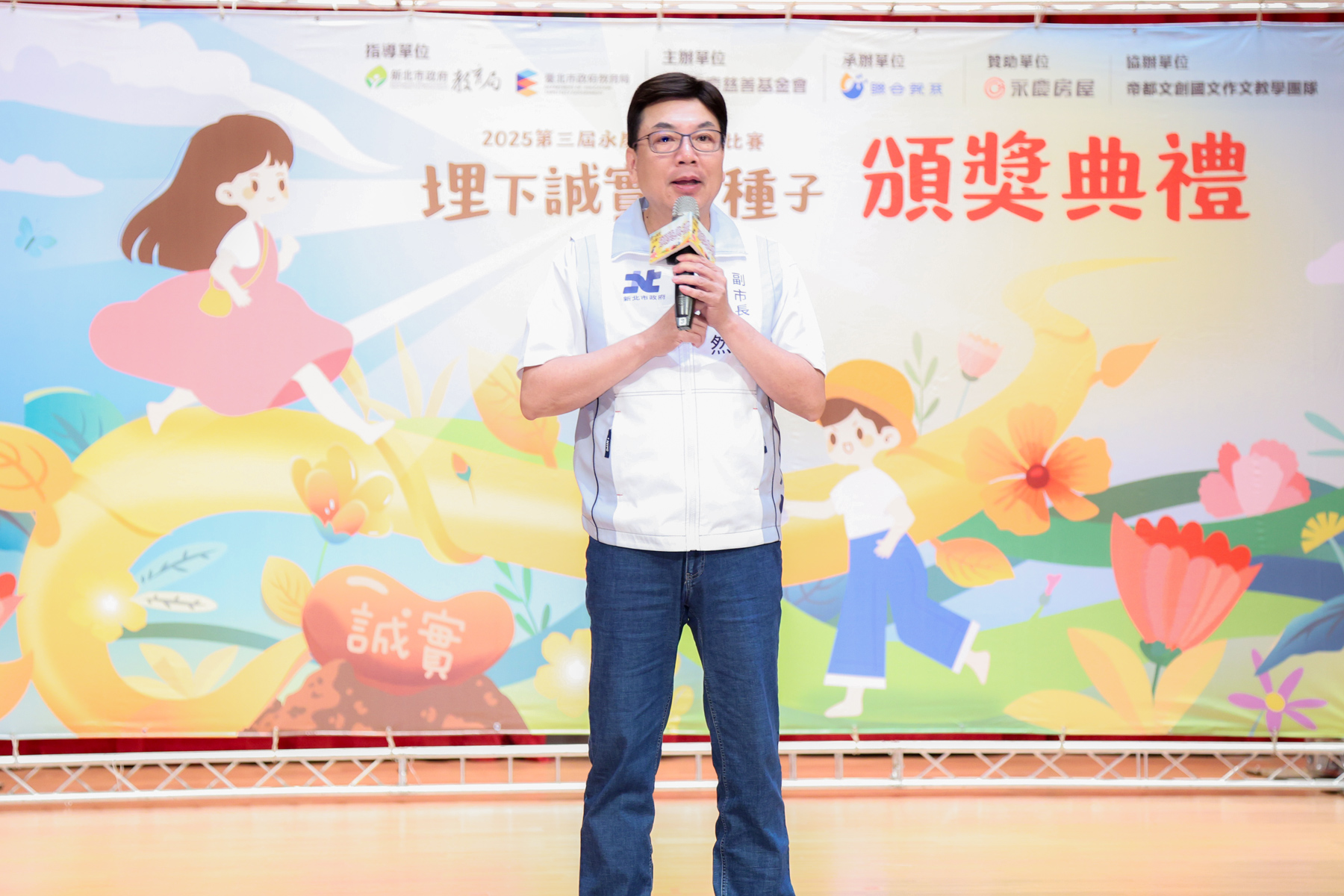 新北市副市長劉和然致詞時指出,每個學生都代表一顆誠實的種子,而誠實是需要經過很多的灌溉跟培養,才會長成大樹,而這每棵大樹都各有特色。新北市政府重視學生的品德教育與適性發展,感謝永慶慈善基金會舉辦誠實徵文比賽,給學生們一個滋養的養分,用寫作的方式,這不僅是文字呈現能力,背後更代表學生的創造性思考,劉和然副市長也鼓勵學生持續做兩件事,第一是持續的大量閱讀,有助於未來寫作進步,第二是閱讀過後的觀察與思考,學會跳脫框架、批判性思考,往茁壯成大樹之路前進。