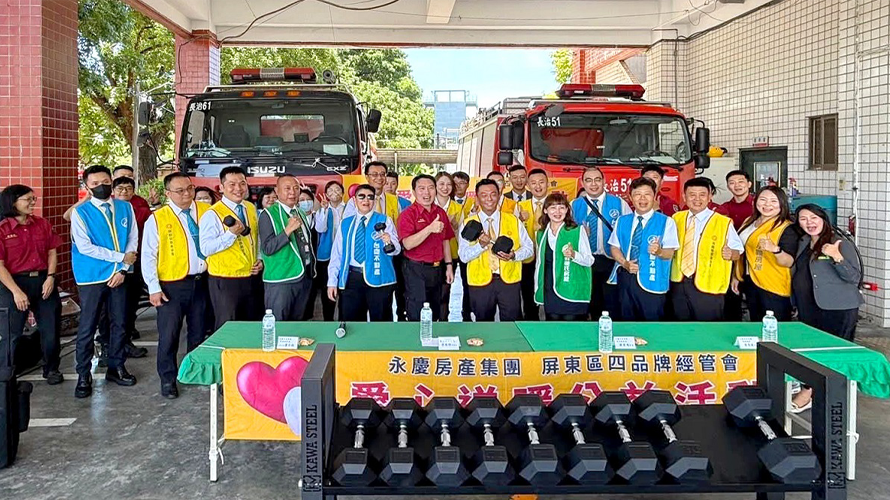 消防人員時常面對各種高風險的救災環境,強健體能和精良設備成為完成任務的基礎,永慶房產集團為強化消防救災力,過去曾捐贈ALS自動甦醒器、電動車滅火毯、救護外套等。今年六月,永慶房產集團加盟四品牌屏東區經管會(永慶不動產、永義房屋、有巢氏房屋、台慶不動產)再次回應在地公益需求,捐贈一批體能訓練設備給屏東縣政府消防局第一大隊長治分隊,並於6月19日舉行捐贈儀式。