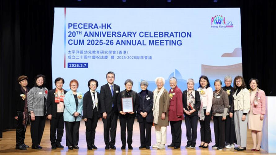 香港2026年3月12日 -- 太平洋區幼兒教育研究學會(香港)(PECERA-HK)近日在香港耀中國際學校舉行成立二十周年慶典暨2025–2026年度大會,並首次頒發「傑出教育家獎」,以表彰在幼兒教育領域,作出卓越終身貢獻的教育工作者。耀中耀華教育網絡行政總裁兼校監陳保琼博士成為首位獲此殊榮的教育家,標誌其在中國香港、中國內地及海外幼兒教育發展方面的卓越成就,獲得廣泛認可。