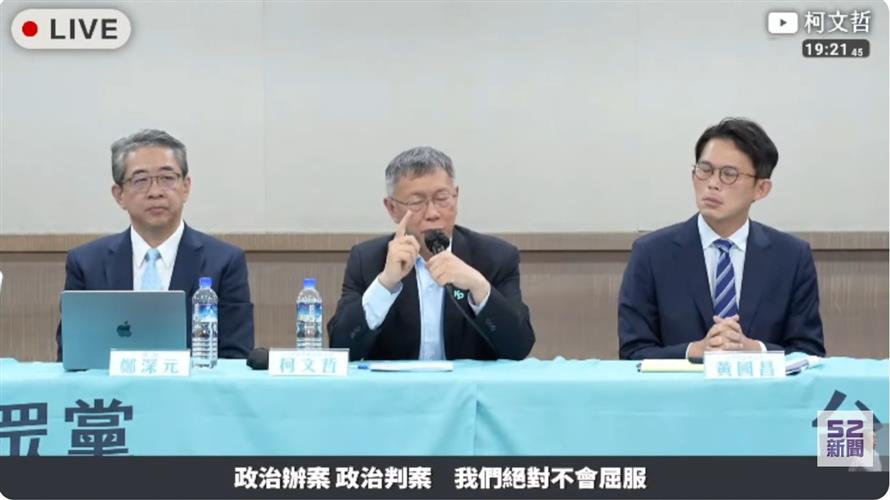 柯文哲與黃國昌昨出席記者會痛批司法迫害。翻攝52新聞直播
