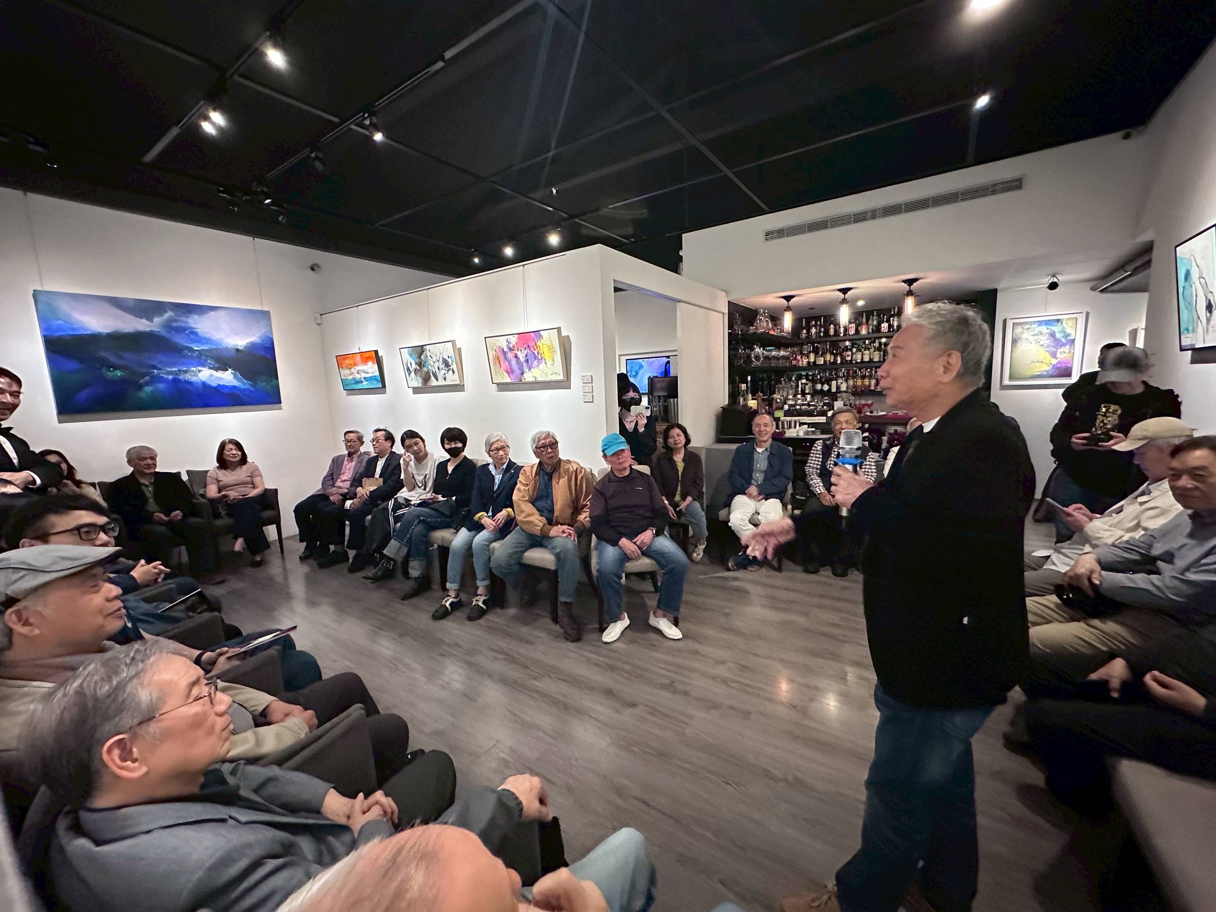 此次共展出40件近年精彩創作,開幕式中,多位重量級貴賓與藝術人士到場祝賀,包括台灣現代版畫之父廖修平、台灣畫廊協會資深顧問陸潔民、國立台灣師範大學美術學系主任孫翼華、誠品集團監察人吳清河、兄弟大飯店董事長洪瑞河、台灣民歌教父吳楚楚以及眾多台灣藝術家好友…等多位貴賓到場,場面溫馨隆重。