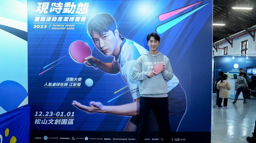 2023臺灣運動產業博覽會活動大使「人氣桌球名將」江宏傑今(24)日驚喜現身松山文創園區,現場粉絲驚呼連連,江宏傑一展親切形象,開心地跟民眾一起提前歡度聖誕,「可以用體驗多元運動以及認識臺灣運動產業來跟大家度過聖誕前夕,真的是太幸福了。」
