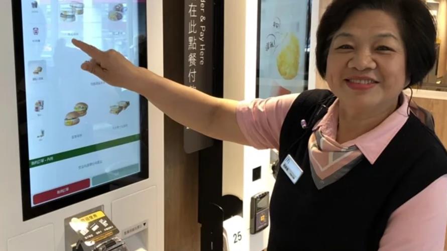 72歲的蔡儀靜在麥當勞服務了20年,在數位自助點餐機推行時,自告奮勇負責引導顧客使用。(圖/麥當勞提供)