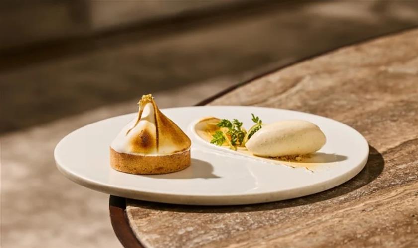 法式檸檬塔/焦烤蛋白霜/大溪地香草莢,下午茶限定,360元。(圖/芃卓提供)