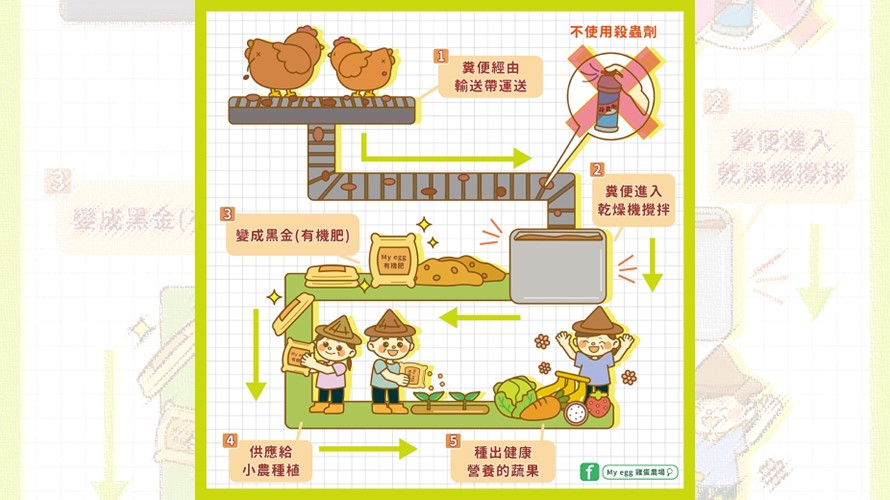 ▲My egg 雞舍處理雞糞流程示意圖(圖 /My egg雞蛋農場提供)