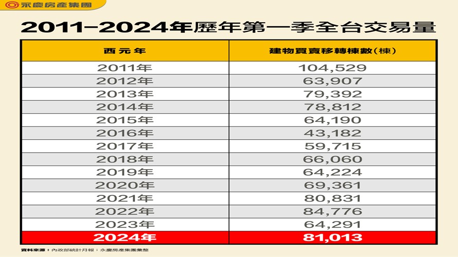 ▲表_2011-2024年歷年第一季全台交易量。(圖/永慶房屋提供)