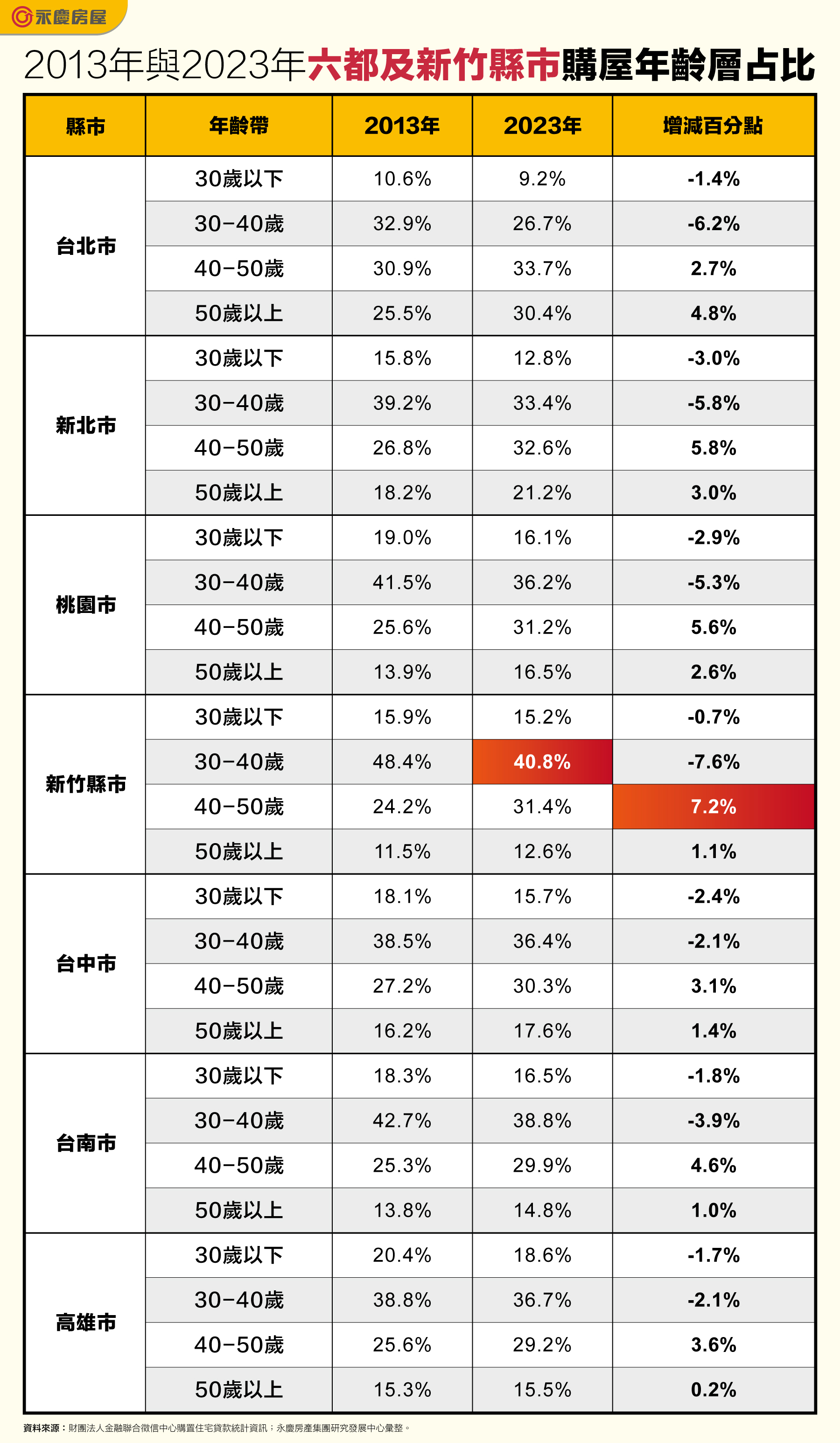 新竹縣市40歲以下年輕族群購屋占比56%七都最高