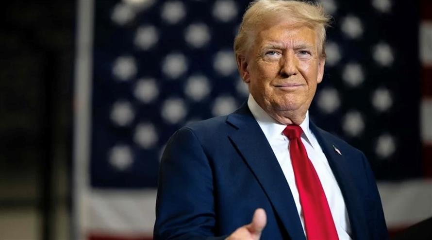 美國前總統、共和黨總統候選人川普25日抵達北卡羅來納州薄荷山的競選集會場地時,豎起他的大拇指。(圖/摘自X)