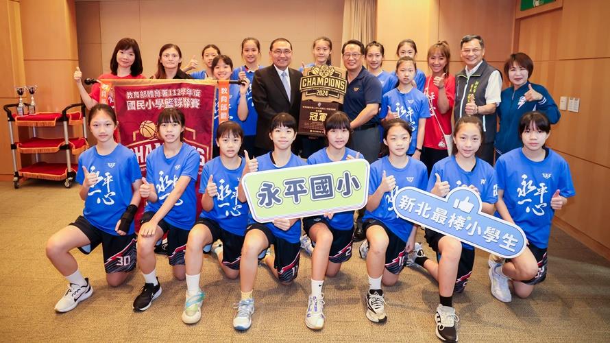 EBL「112學年度國民小學籃球聯賽」女子組冠軍戰,5月19日在泰山體育館舉行,新北市永平國小在冠軍賽時展現了極高的球技和無比的團隊合作精神,最終以41比22力退臺北市南港國小,5日於市政會議由唐永安校長、教練團及全體隊員一同獻上優勝錦旗及冠軍獎盃,與侯友宜市長分享榮耀,市長嘉許新北小將們傑出表現,並頒發20萬元獎勵金。