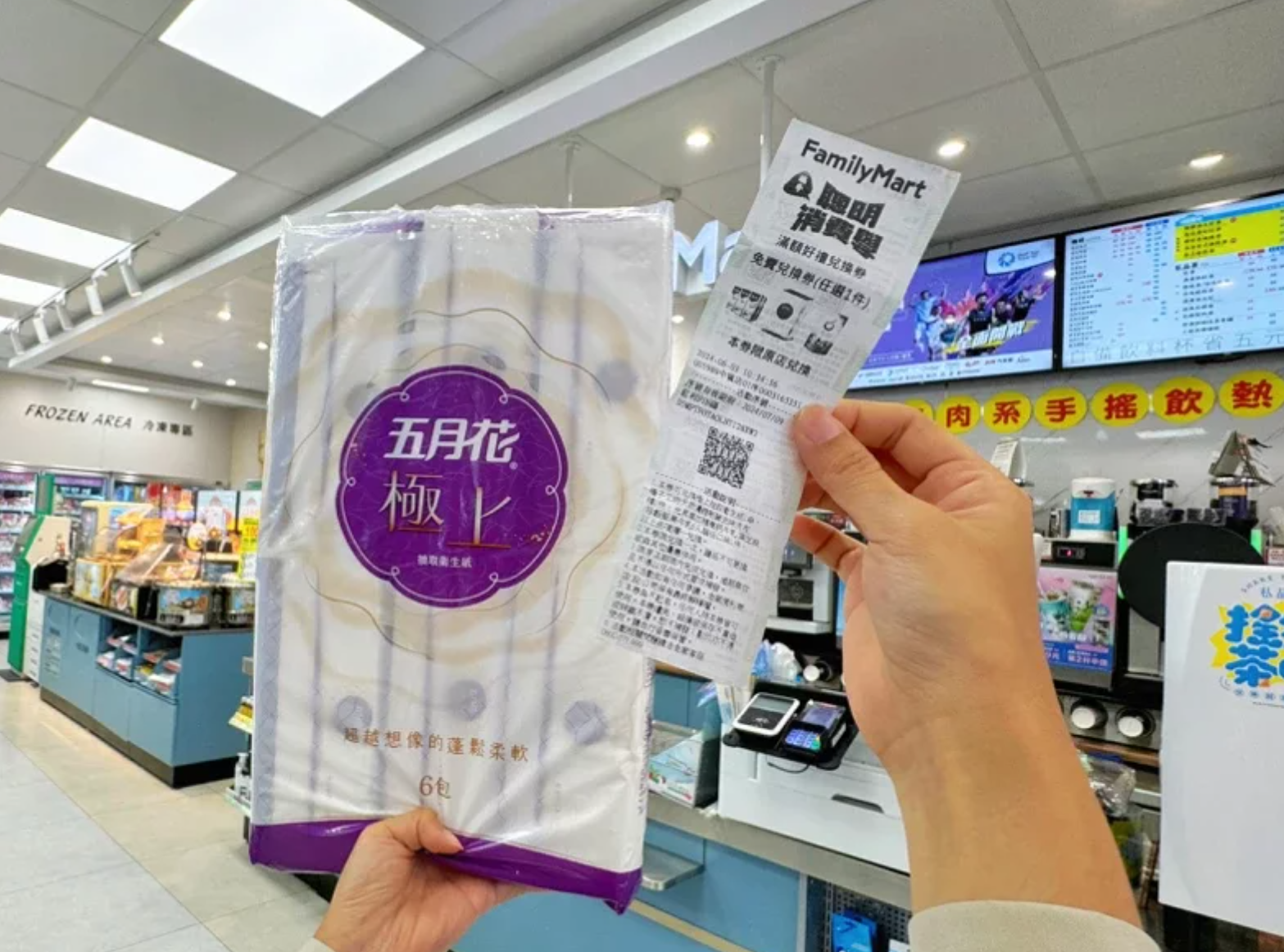 活動期間,使用台新、玉山、中信、富邦、永豐、聯邦、新光銀行信用卡、全盈+PAY或悠遊卡在全家購買指定商品,單筆消費滿500元即享現折50元優惠。若使用全盈+PAY綁定銀行或電支帳戶,再加碼折20元(單筆不累贈,數量有限,贈完為止)。同時,購買指定商品單筆消費滿1,000元可獲得好禮5選1兌換券,包含衛生紙、洗衣精或牛乳等(單筆不累贈,兌換期限至7月9日)。