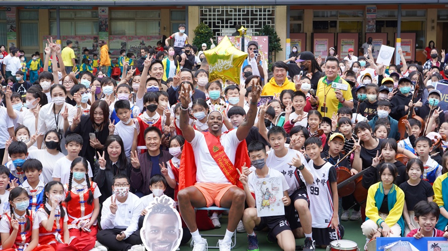 桃園永豐雲豹超級球星霍華德(Dwight Howard)在台灣迎接37歲生日,啟動一系列公益計畫,今(8)日活力滿滿出席道明與立人兩間校園活動,與全校師生高唱生日快樂歌,親切用中文歡呼「我愛你」,與學生親切擊掌,在投籃趣味遊戲環節中,甚至主動蹲低並用雙手圍繞作為籃框,讓幼兒園小朋友體驗投籃樂趣,鐵漢柔情的舉動,融化在場師生的心。