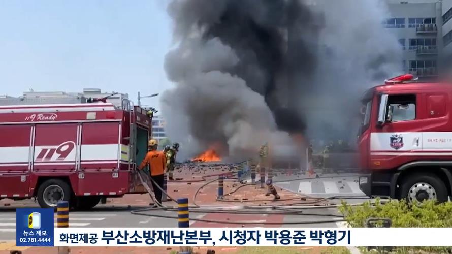 火光濃煙瀰漫!釜山超市外爆炸波及停車場