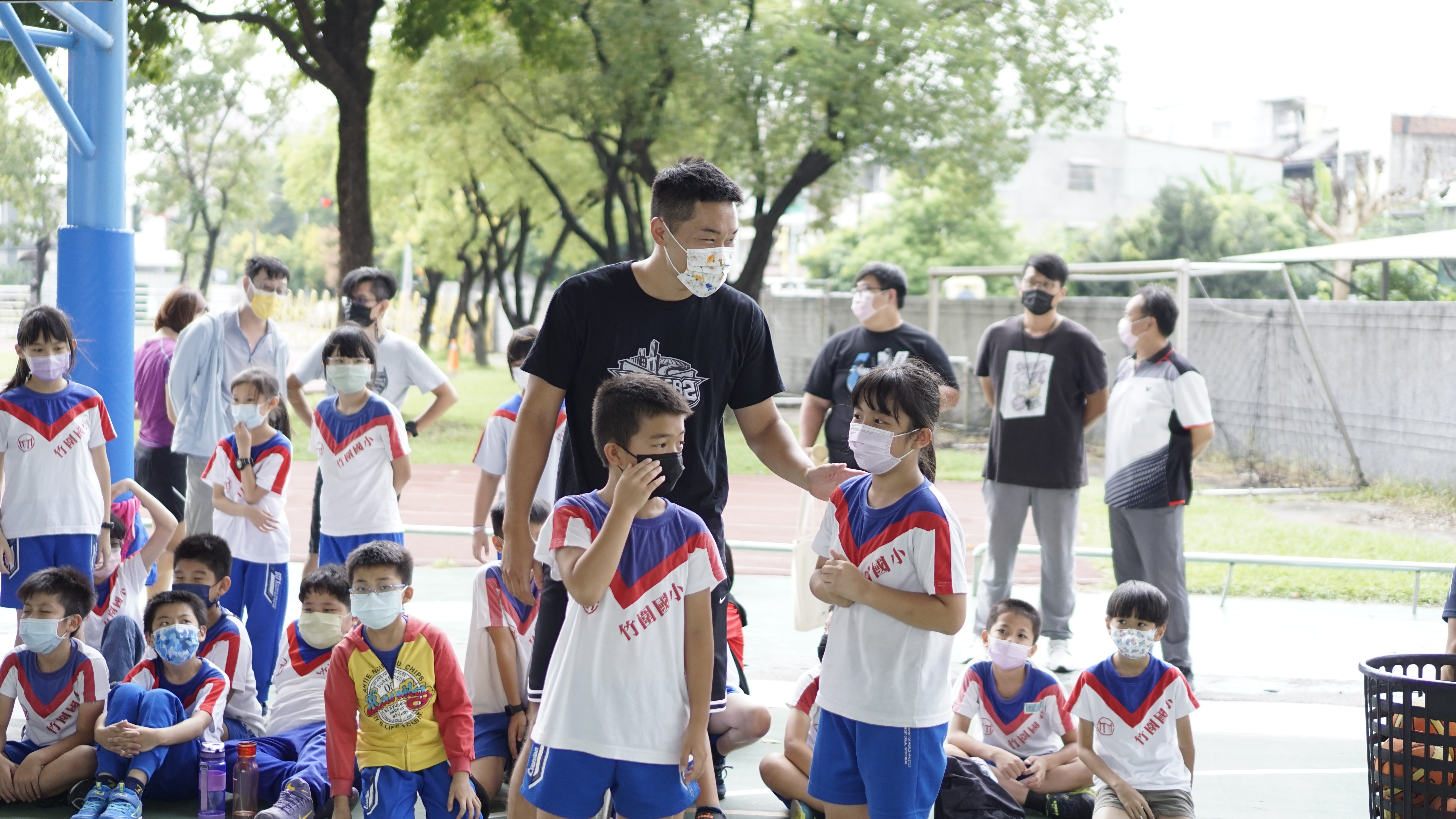 高雄鋼鐵人球星到岡山竹圍國小 化身一日體育老師與200師生互動