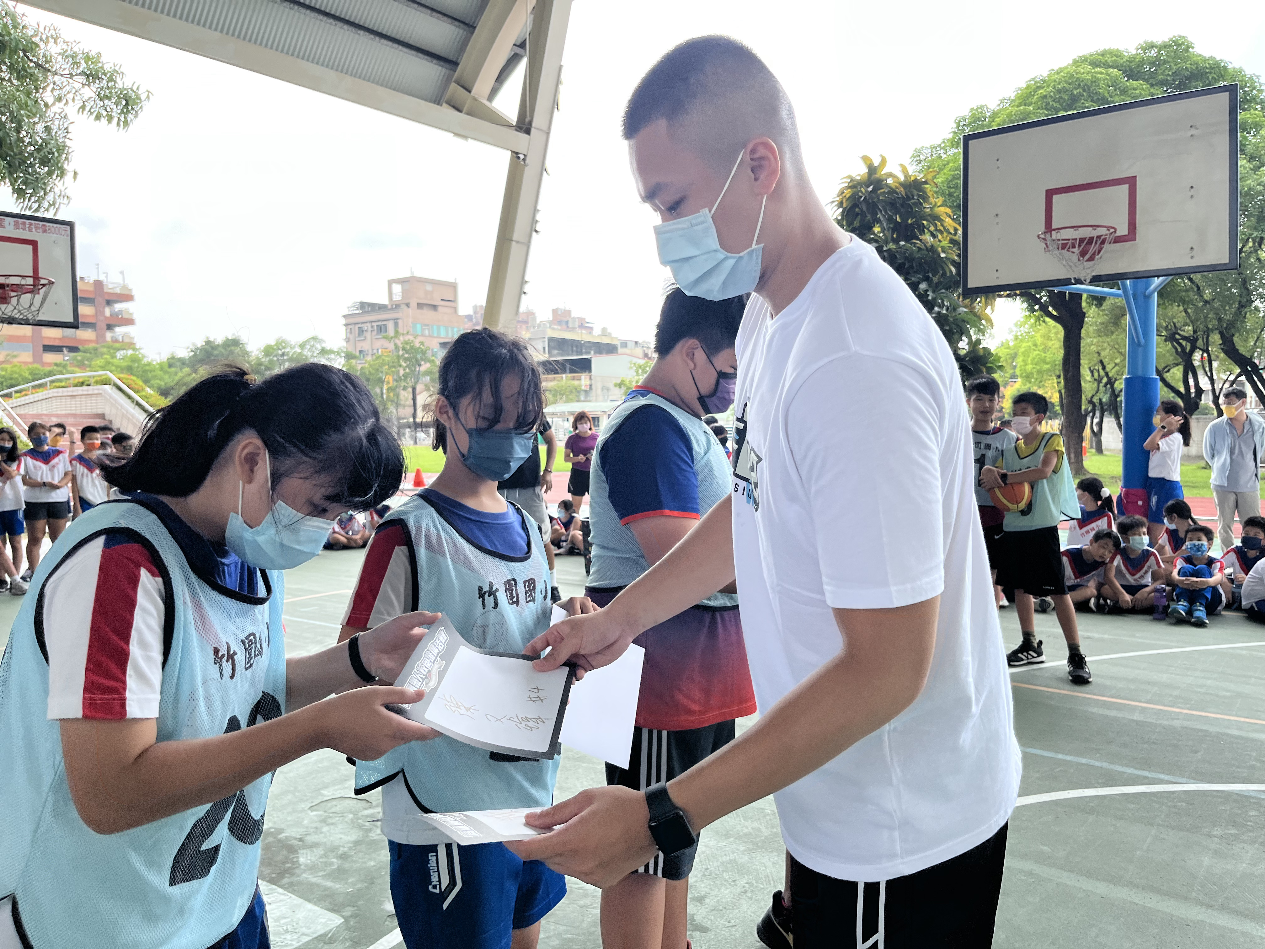鋼鐵隊長呂政儒贈送親筆簽名給竹圍國小小朋友。(圖/鋼鐵人提供)
