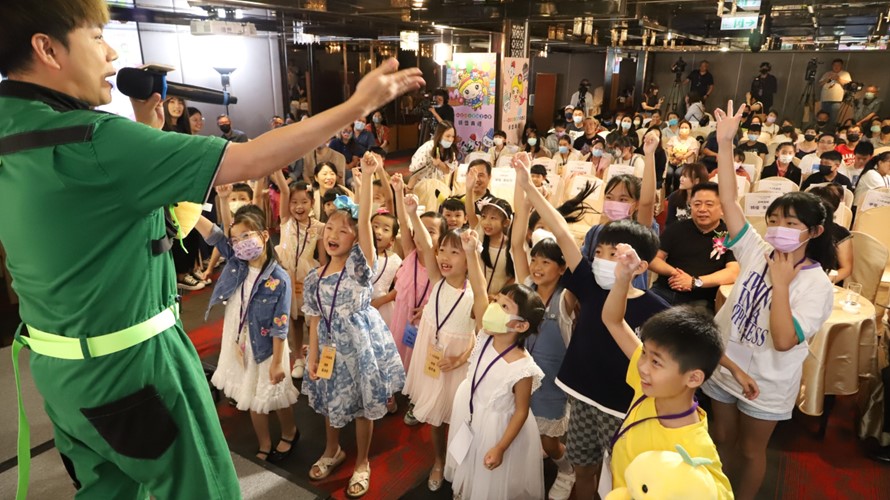 ▲第20屆利百代之星繪畫比賽活動大使-小岳哥哥(左一)於頒獎典禮開場,與得獎小朋友們開心的互動。(圖/利百代國際實業股份有限公司)