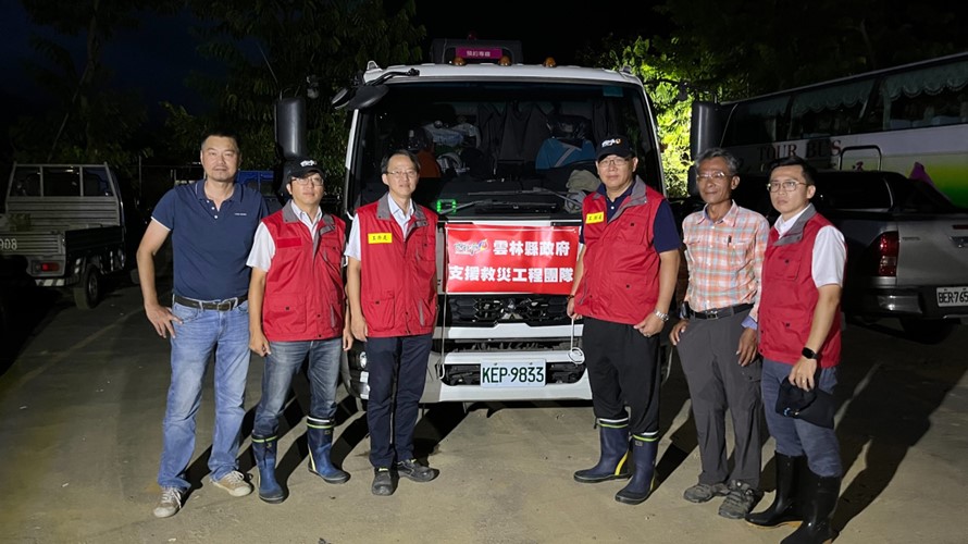 張麗善縣長表示,為了搶修道路,他派遣專業工務處長汪令堯協調雲林縣內所有搶通道路的機具業者,預計將派遣7台挖土機(型號45)、14台挖土機(型號120)、1台挖土機(型號200)、11台鏟土機和3.5噸貨車各3台,還有22名人力支援隊員,立即前往南投展開搶修開通道路的工作。