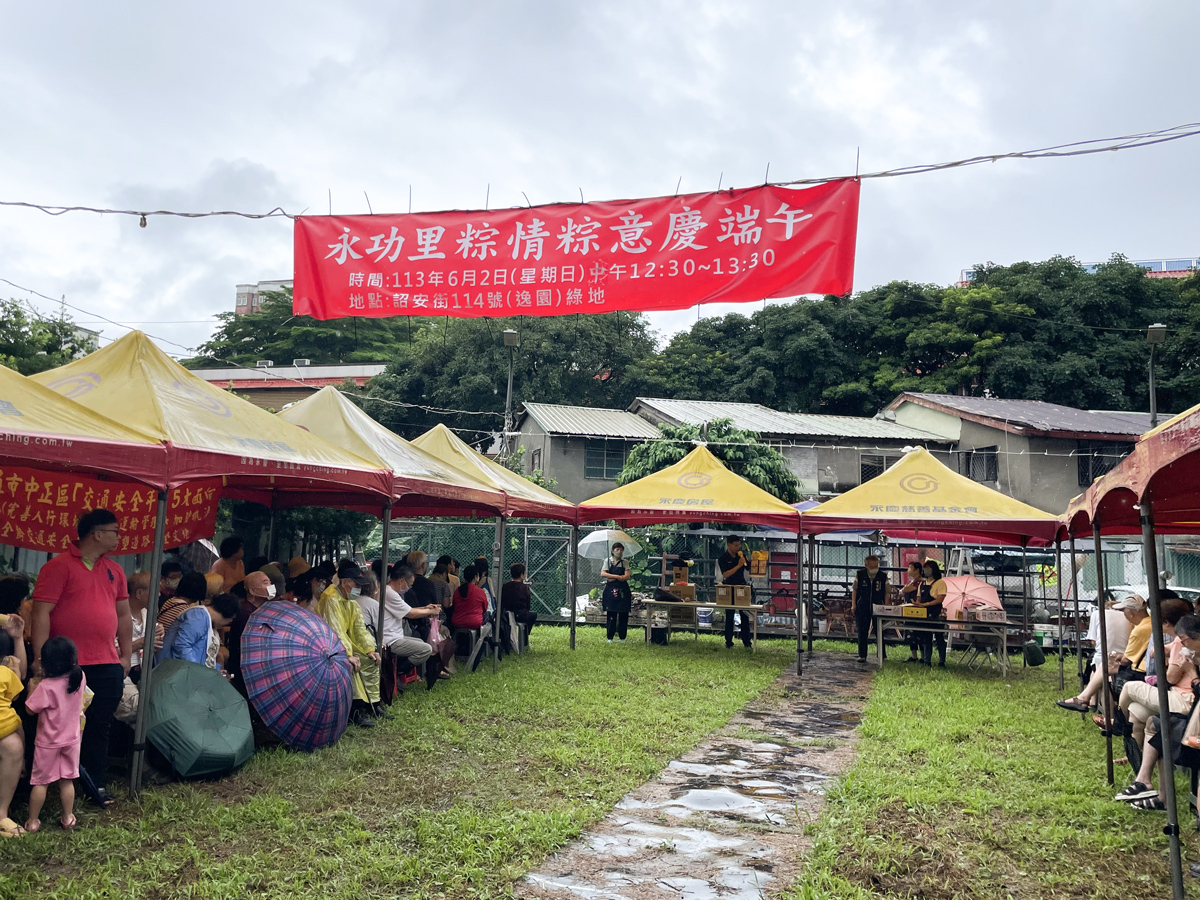 ▲台北市中正區永功里辦公處除了贈送粽子等物資外,也舉行大型戶外講座,提供最新的防災與防詐資訊給在地里民。