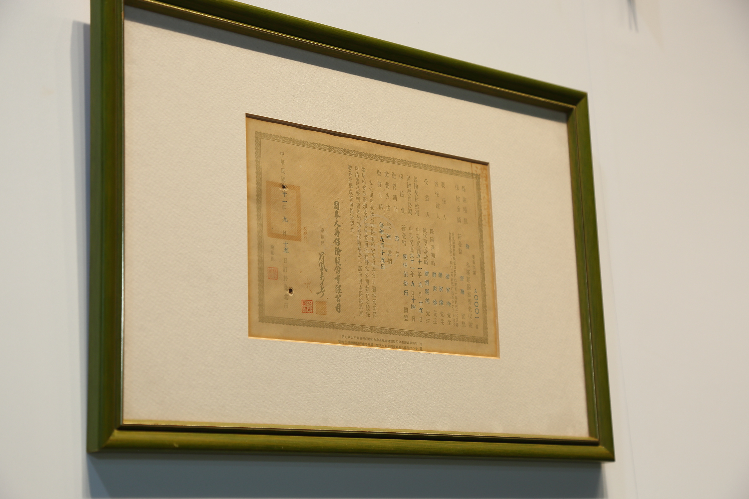 ▲台灣保險史上第一張養老險也是國泰人壽第一張保單(圖/國泰金控提供)