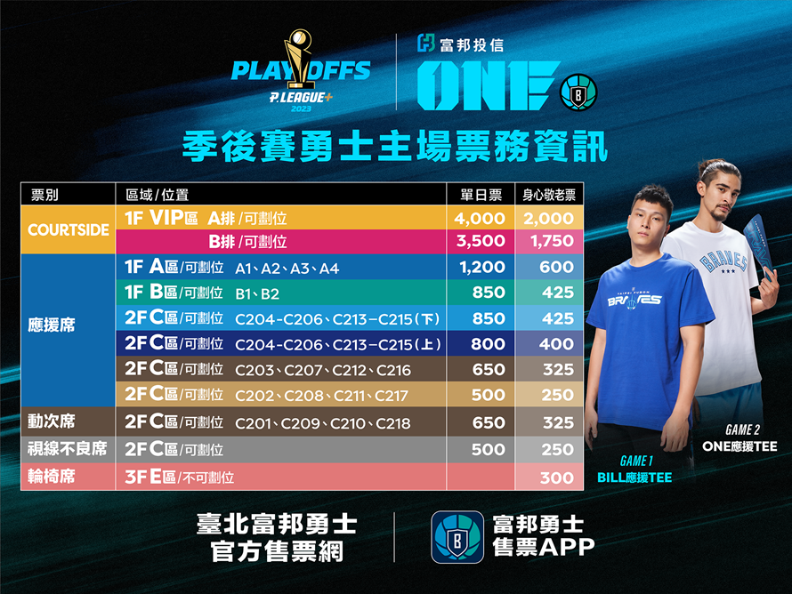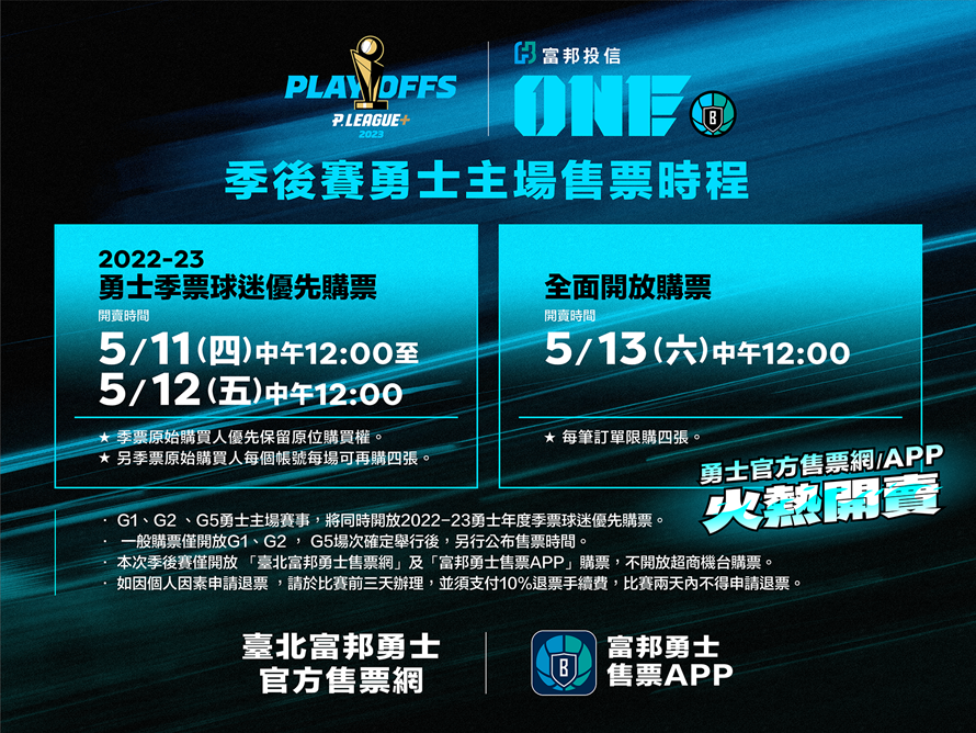 ▲22-23臺北富邦勇士季後賽主場票務資訊。(圖/富邦勇士提供)