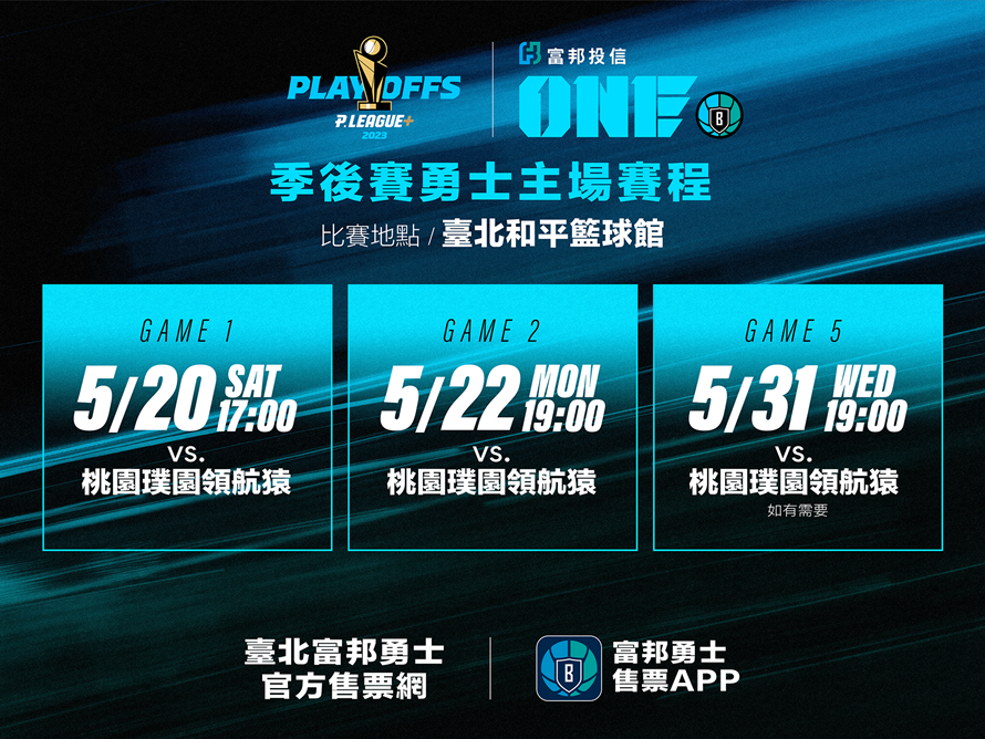 ▲22-23臺北富邦勇士季後賽主場賽程。(圖/富邦勇士提供)