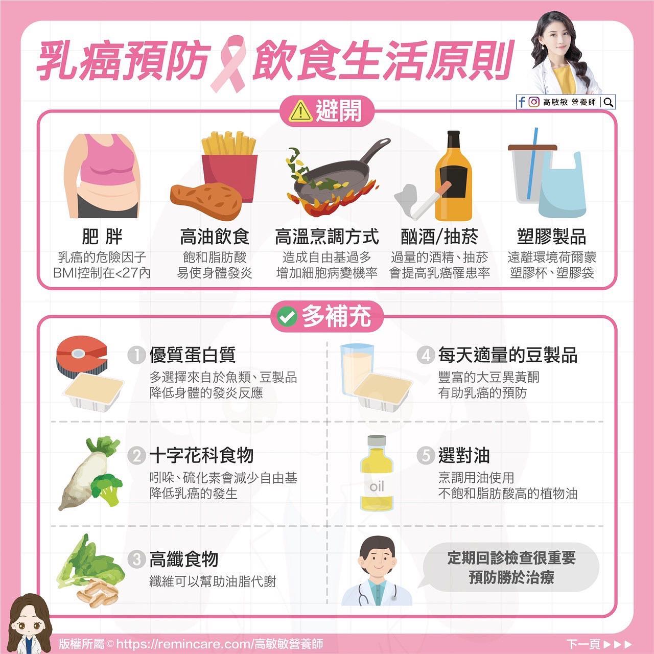 ▲高敏敏提供「5避開,5多吃」,預防罹患乳癌風險 。(圖/翻攝高敏敏臉書)