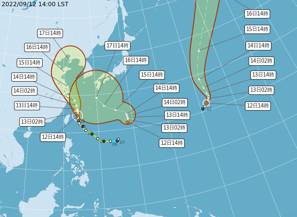 ▲海上颱風警報預計13日下午解除。(圖/氣象局)