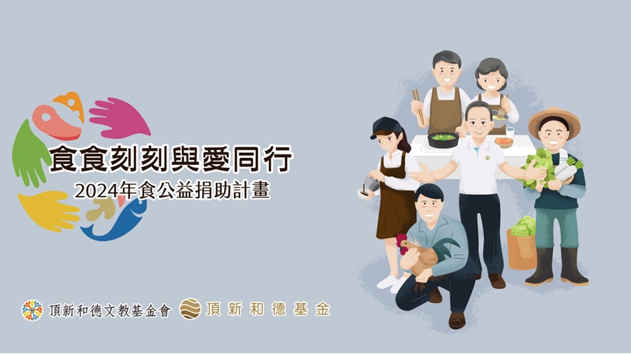 頂新和德文教基金會首創以「飲食」為經、「公益」為緯的「食食刻刻與愛同行-食公益捐助計畫」,實施九屆累計捐助公益團體逾3,200萬元,受惠的偏鄉兒少、獨老、高風險家庭、街友、身心障礙者達360萬人次。第十屆計畫即起到6月14日徵件,歡迎公益團體提出與「食」相關之公益計畫或服務方案申請捐助。
