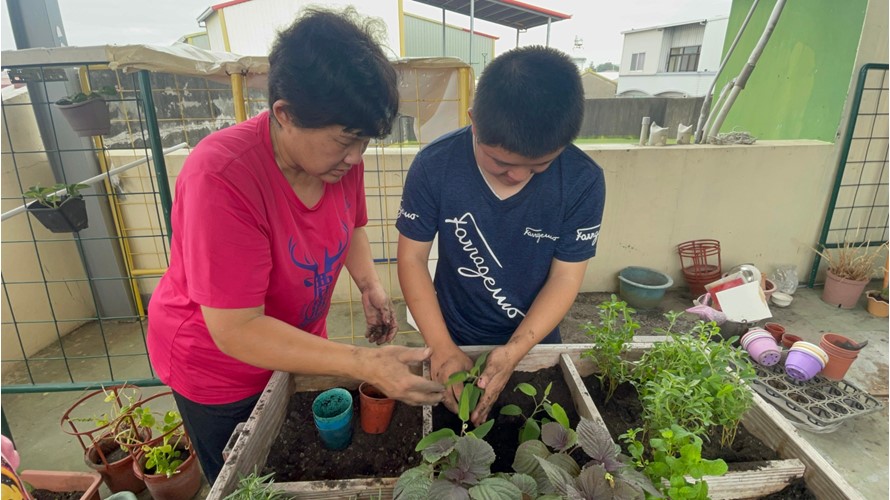 結合食農教育協助身障者的「彰化縣蕪菁愛家園關懷協會-憨直人小作所」,透過多元課程與產品代工等形式,提供學員職業訓練及工作機會,協助他們融入社會、翻轉人生。小作所將食公益的補助經費用於規劃香草園區,學員親手種植香草植物與花卉,不僅能療癒心靈,也能將種植成果移至在地市集展售,或將採收的香草做成新鮮香草茶進行義賣,藉此培養學員的工作技能並提升自信心。