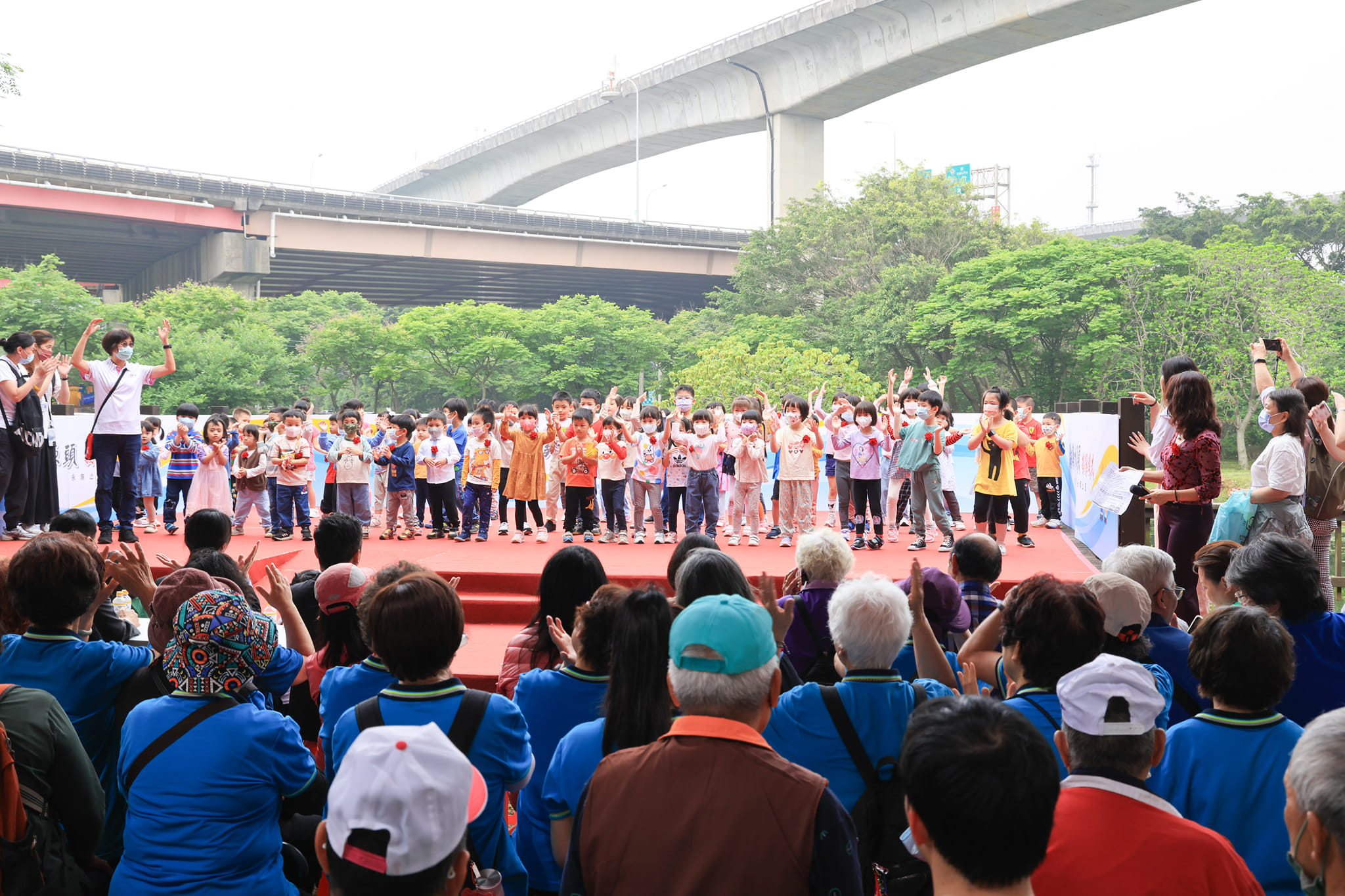 ▲桃園平鎮在地80位幼兒園小朋友也到場為「洽溪水源頭碑揭綵儀式」獻上可愛舞蹈表演。(圖/永慶房屋提供)