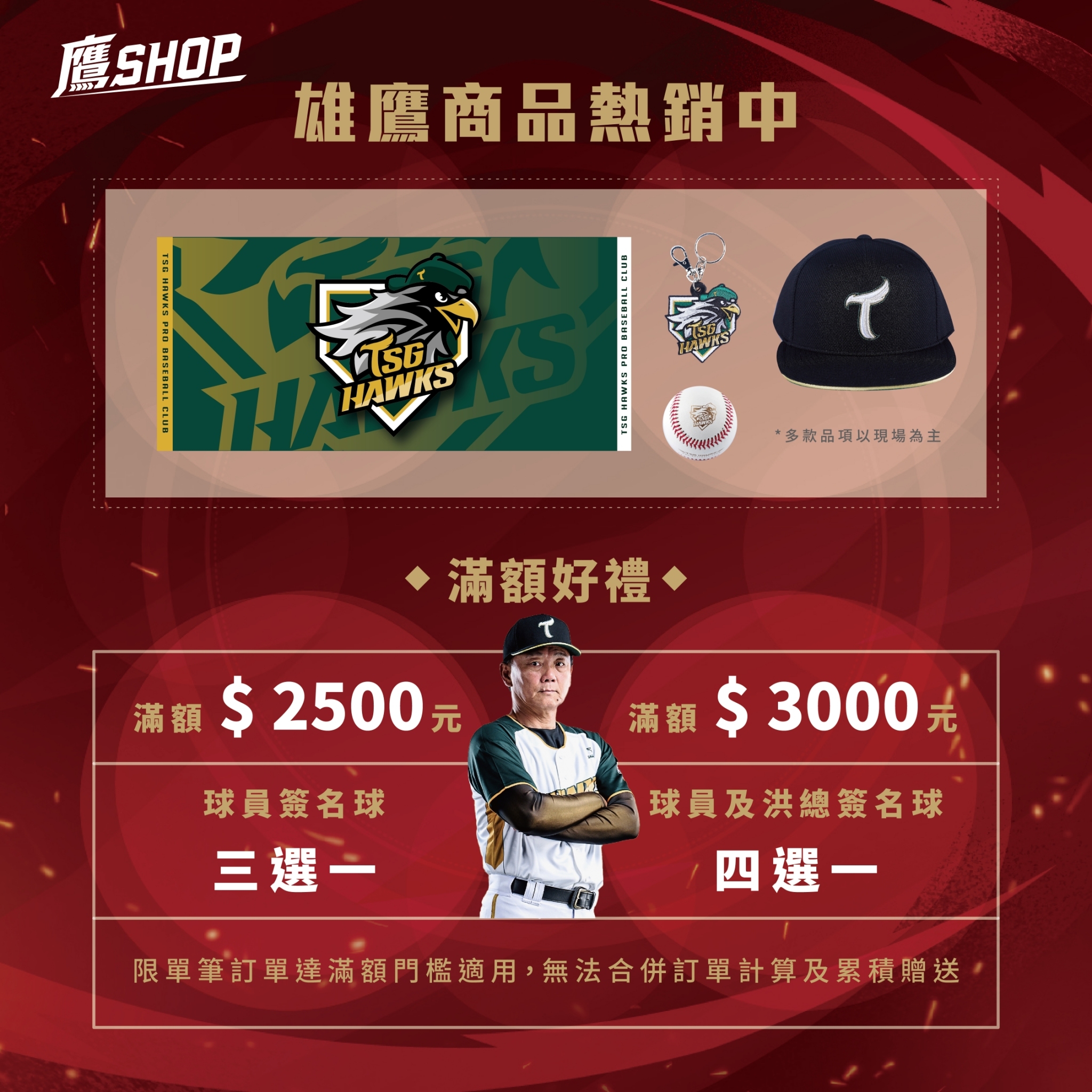 「鷹援吶喊區」除了有Wing Stars圍繞在該區,陪著鷹援軍們一起支援收贏以外,還有金恩(Nicholas King)同款「鷹」王冠,一起戴王冠成為場邊的鷹援之王吧!而全、少、半糖區域將可獲得「鷹」援手環,快來一起點亮臺南主場。另外Wing Stars年度主視覺應援毛巾及「清純精靈」朴旻曙應援毛巾將於週末主場2F鷹SHOP搶先開賣,「最強外掛」安芝儇應援毛巾也將再次開放販售,數量有限,售完為止!消費滿額將有機會獲得「辣個男人」雄鷹總教練洪一中簽名球,超優BEST好禮等你來收藏。