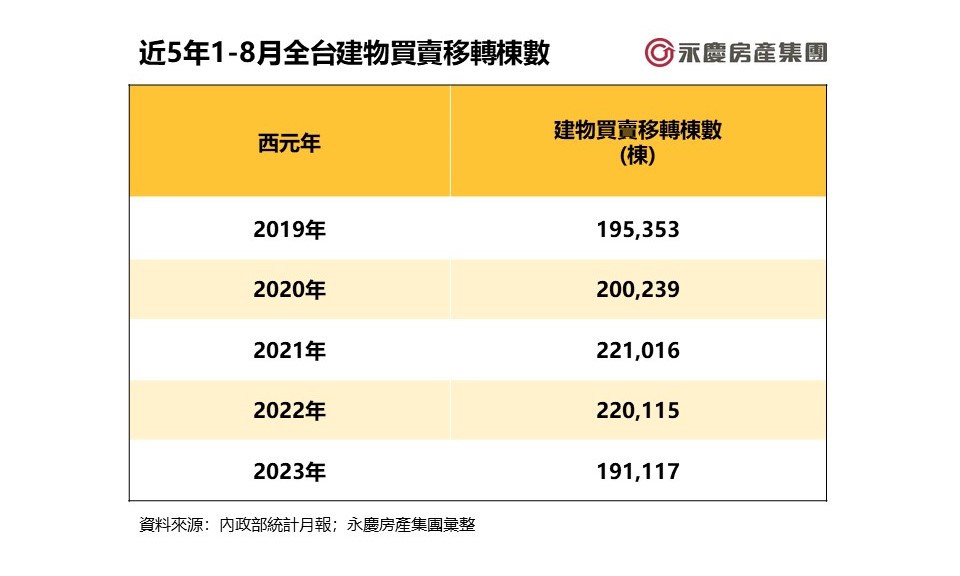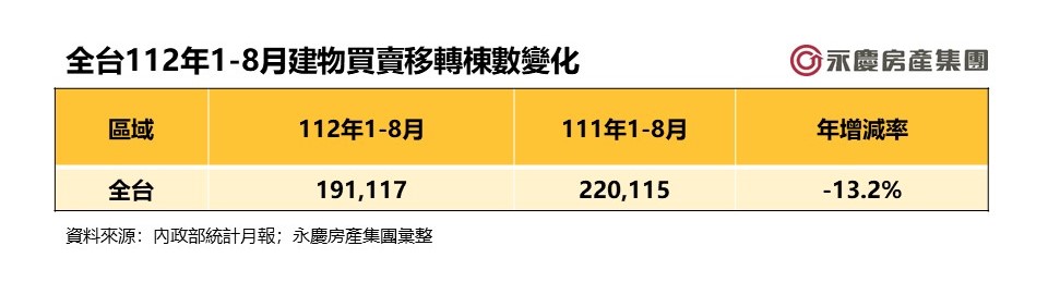 仍是5年新低! 全台1-8月房市交易19.1萬棟 年減13.2%