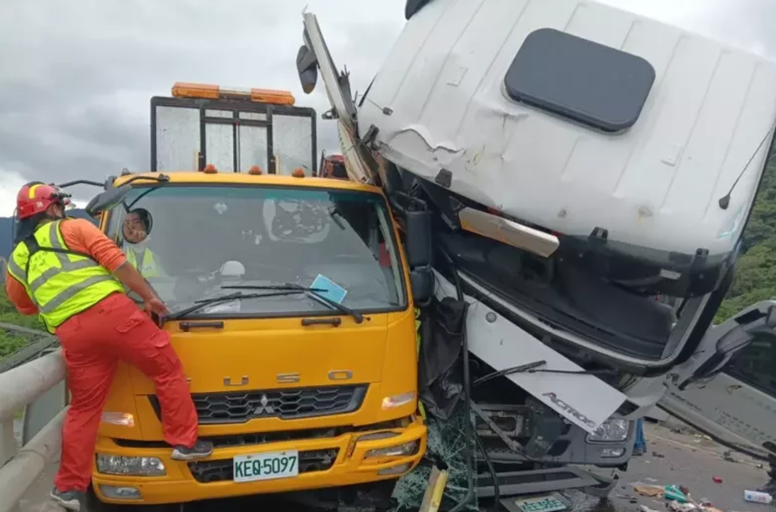 蘇花改大貨車追撞緩撞車 現場車頭扭曲雙向封路