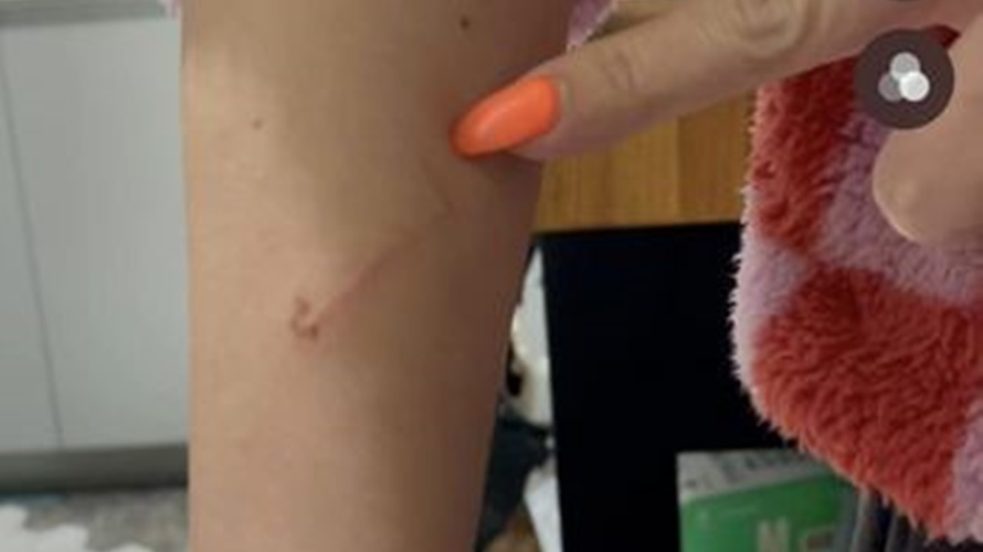 過年穿新衣,有民眾買了一件美國休閒服飾品牌的上衣,回家還先洗過,但是穿在身上,手臂卻出現一條刮痕,原來店家的防盜扣沒完全的卸除好,針頭還留在衣服上,穿上後手一動就被刮傷,她只能慶幸還好不是小孩穿到。