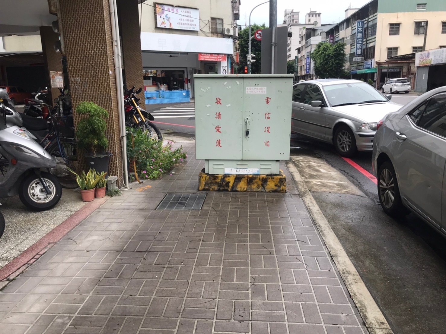 張先生直指,這些佔用騎樓的現象,或可說是民眾違規或是公德心太差,但實際走一趟市區道路還會發現,連公家單位的電箱都會阻礙通行,逼得行人走到路邊跟汽機車爭道,「私人與公家單位的雙重阻礙,讓台中成為真正的行人十八層地獄」。