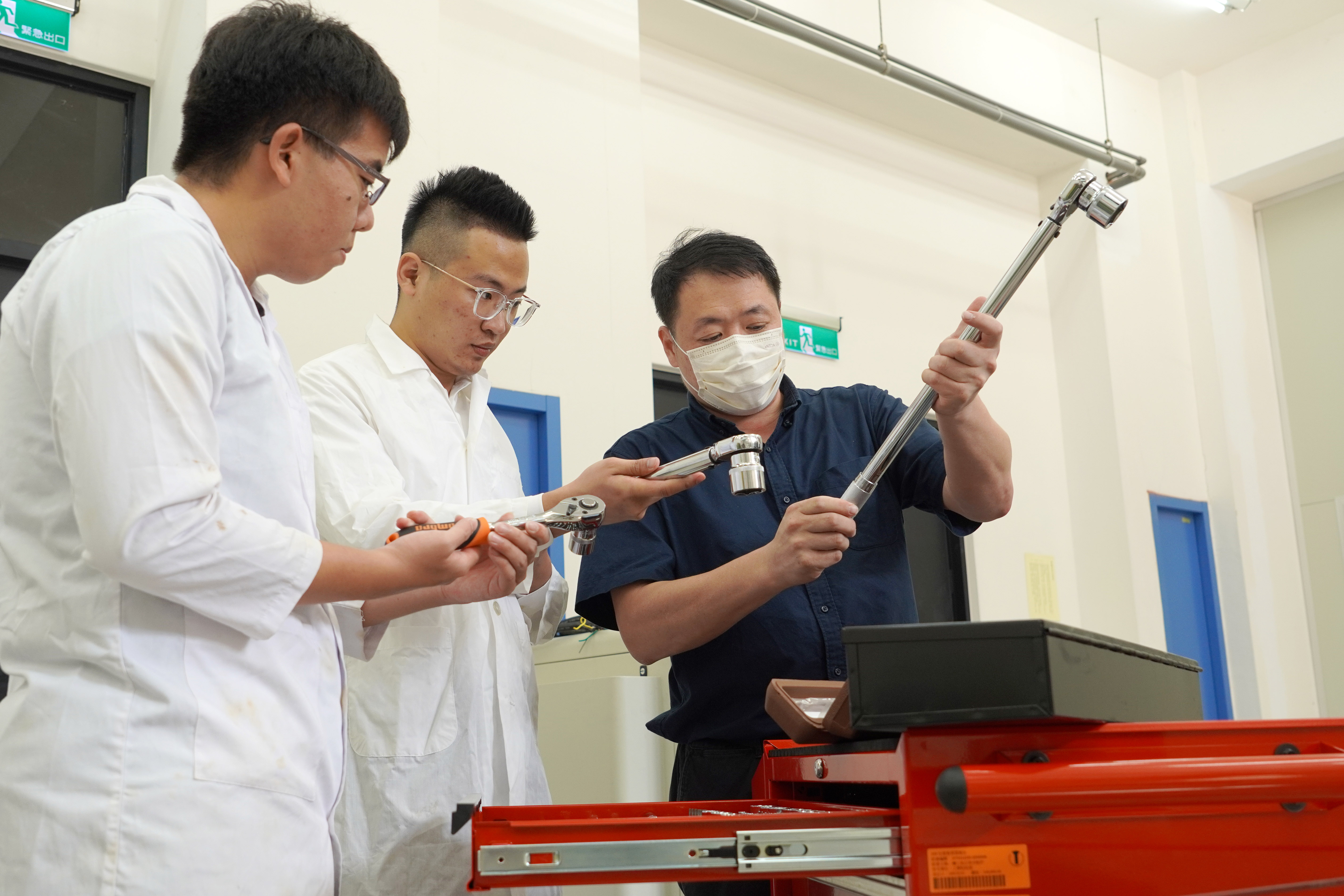▲大葉大學吳鴻筠老師(右)向學生介紹風電相關工具(圖/大葉大學提供)